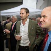 (Left: Rigby's Marc Newton and Bernard Knobel from Blaser share a joke. Above/Right: 'County Deer Stalkings' own Peter Jones collars himself an invite)